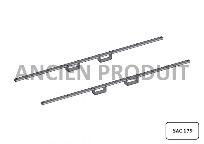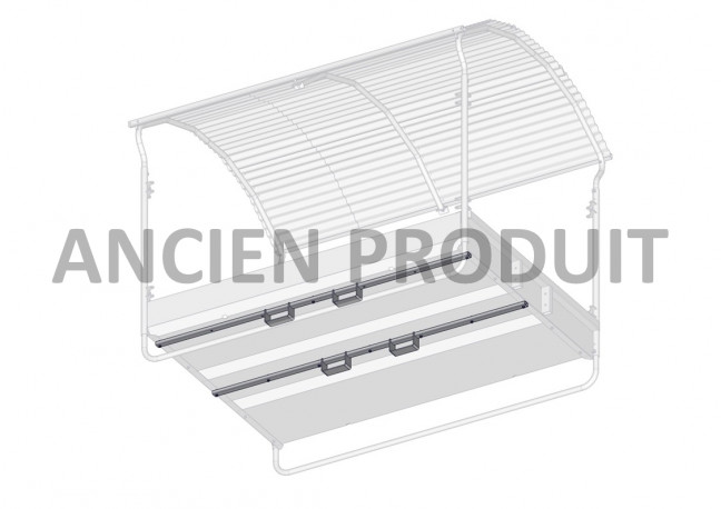 2 rectangles de 50 X 30mm avec 2 guides fourches de soudés dessus, les rectangles se fixent sous l'auge du râtelier Big ball (2X3m) pour son transport par fourches du côté du 3m. Ce principe permet de transporter le râtelier vide par le dessous, avec le télescopique pour passer minutieusment les fourches dans les 2 passages fourches avant de soulever le râtelier du côté des 3m. Veuillez respecter la législation en vigueur pour un transport sur route.
