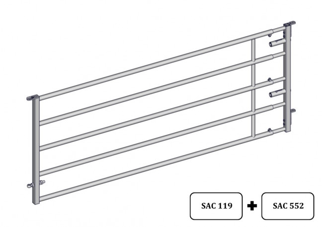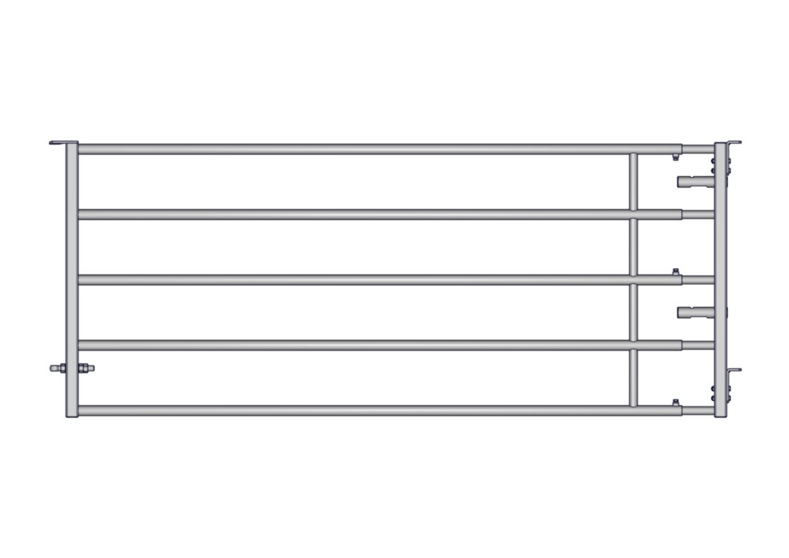 Panneau d'herbage 5 lisses de 3/4m. Panneau d'herbage 5 lisses de 3/4m. composé d'un arrière d'herbage long 2.50m et d'un avant d'herbage Autolock avec 2 équerres de fixation pour panneau d'herbage.