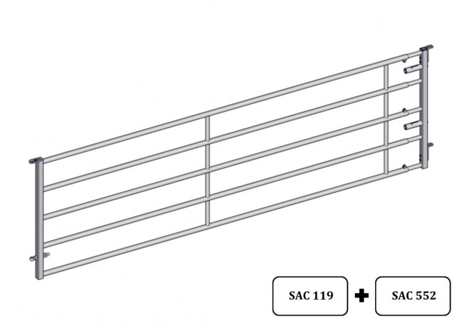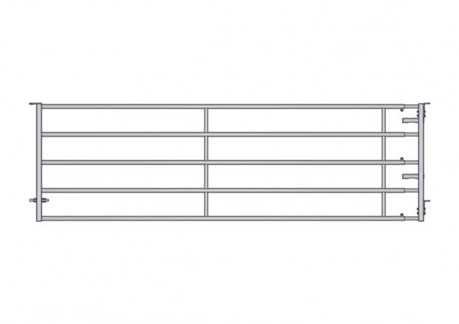 Panneau d'herbage 5 lisses de 4/5m. Panneau d'herbage 5 lisses de 4/5m. composé d'un arrière d'herbage long 3.50m et d'un avant d'herbage Autolock avec 2 équerres de fixation pour panneau d'herbage.