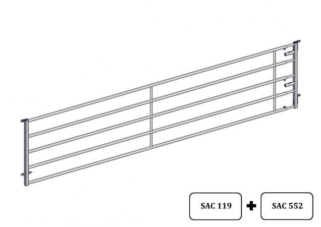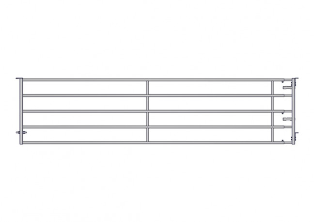 Panneau d'herbage 5 lisses de 5/6m. Panneau d'herbage 5 lisses de 5/6m. composé d'un arrière d'herbage long 4.50m et d'un avant d'herbage Autolock avec 2 équerres de fixation pour panneau d'herbage.