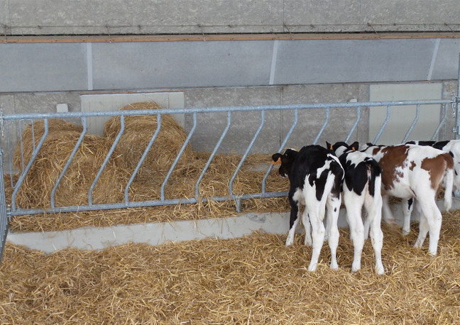 Panneau Libre service Oblique pour Veau de 12 passages de têtes sur 4m. Réalisé en tube ø34mm et ø42mm. Livré avec un renfort à sceller.