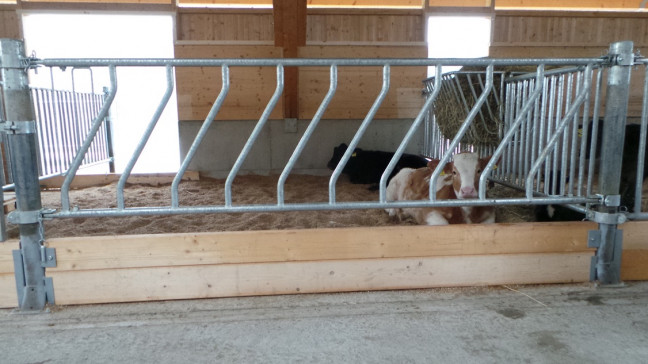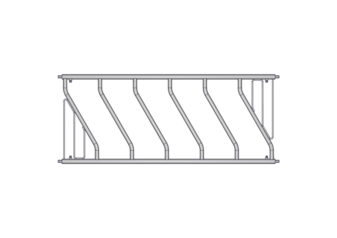 Panneau Libre service Oblique pour Veau de 5 passages de têtes sur 2m. Réalisé en tube ø34mm et ø42mm.