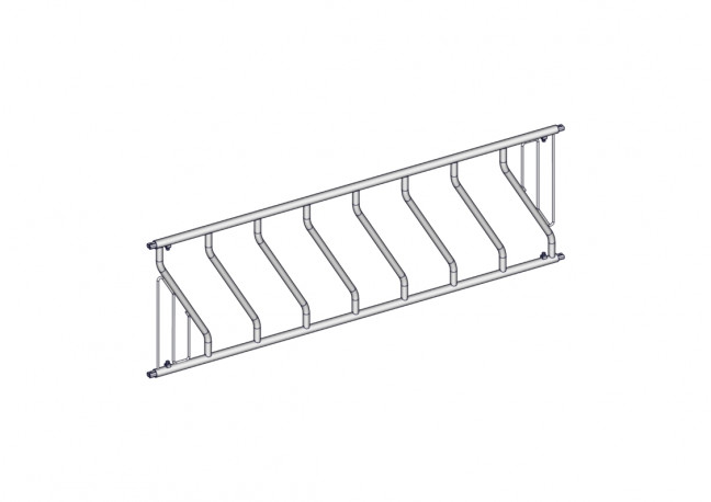 Panneau Libre service Oblique pour Veau de 7 passages de têtes sur 2.50m. Réalisé en tube ø34mm et ø42mm.