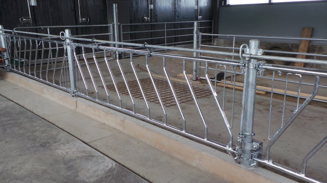 Panneau Libre service Oblique pour Veau de 9 passages de têtes sur 3m. Réalisé en tube ø34mm et ø42mm.