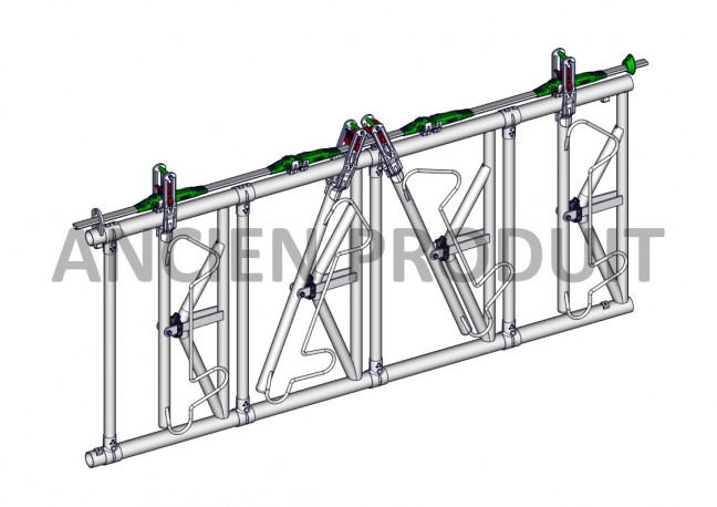 Le Cornadis SAFETY sur panneau est adapté aux troupeaux laitiers écornés ou aux races moyennement encornées. Il ne convient pas aux boeufs d'engraissement. Le dégagement en partie basse permet à l'éleveur de libérer plus facilement un animal tombé. Les longueurs nominales correspondent à des dimensions axe-axe poteaux 102 mm.