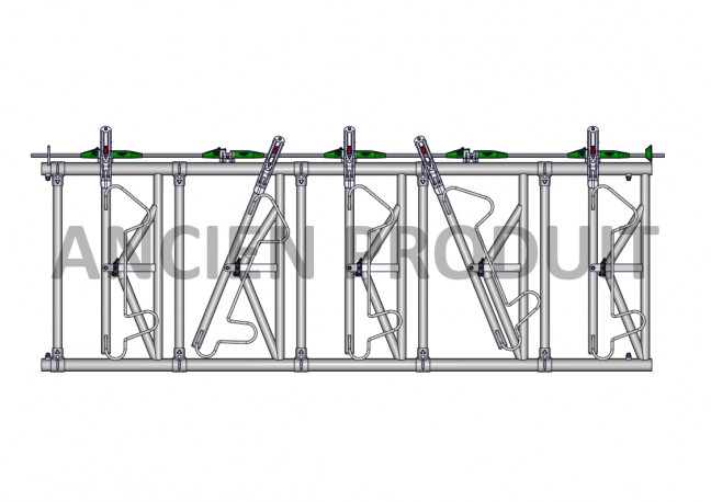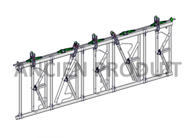 Le Cornadis SAFETY sur panneau est adapté aux troupeaux laitiers écornés ou aux races moyennement encornées. Il ne convient pas aux boeufs d'engraissement. Le dégagement en partie basse permet à l'éleveur de libérer plus facilement un animal tombé. Les longueurs nominales correspondent à des dimensions axe-axe poteaux 102 mm.
