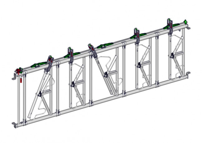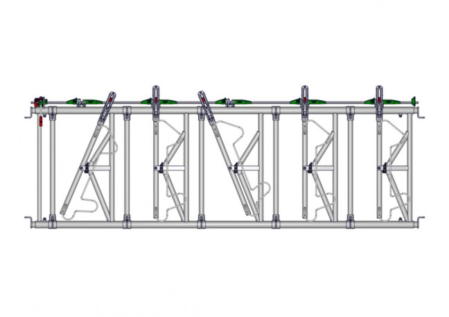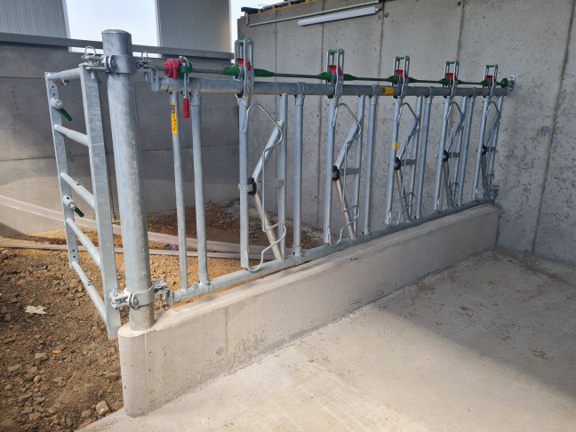 Cornadis de sécurité 5 place sur 3.40m à encolure réglable. Cornadis de sécurité 5 place sur 3.40m à encolure réglable. Cornadis avec axes coulissants en acier revêtus de polyamide choc, bras mobile renforcé par bague anti-usure, anti-passage de tête haut et bas et retour du collier grâce au système RAZ (remise à zéro). Fourni avec 4 embouts de réglage.