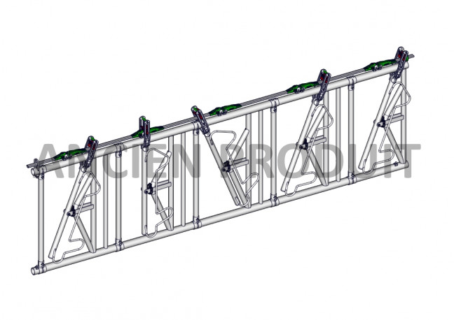Le Cornadis SAFETY sur panneau est adapté aux troupeaux laitiers écornés ou aux races moyennement encornées. Il ne convient pas aux boeufs d'engraissement. Le dégagement en partie basse permet à l'éleveur de libérer plus facilement un animal tombé. Les longueurs nominales correspondent à des dimensions axe-axe poteaux 102 mm.