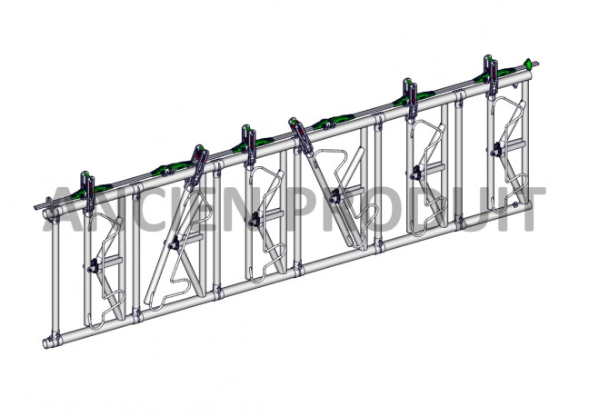 Le Cornadis SAFETY sur panneau est adapté aux troupeaux laitiers écornés ou aux races moyennement encornées. Il ne convient pas aux boeufs d'engraissement. Le dégagement en partie basse permet à l'éleveur de libérer plus facilement un animal tombé. Les longueurs nominales correspondent à des dimensions axe-axe poteaux 102 mm.