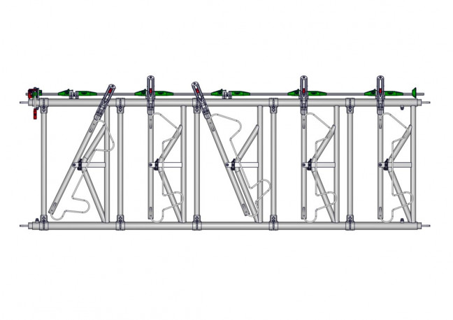 Le Cornadis SAFETY sur panneau est adapté aux troupeaux laitiers écornés ou aux races moyennement encornées. Il ne convient pas aux boeufs d'engraissement. Le dégagement en partie basse permet à l'éleveur de libérer plus facilement un animal tombé. Les longueurs nominales correspondent à des dimensions axe-axe poteaux 102 mm.