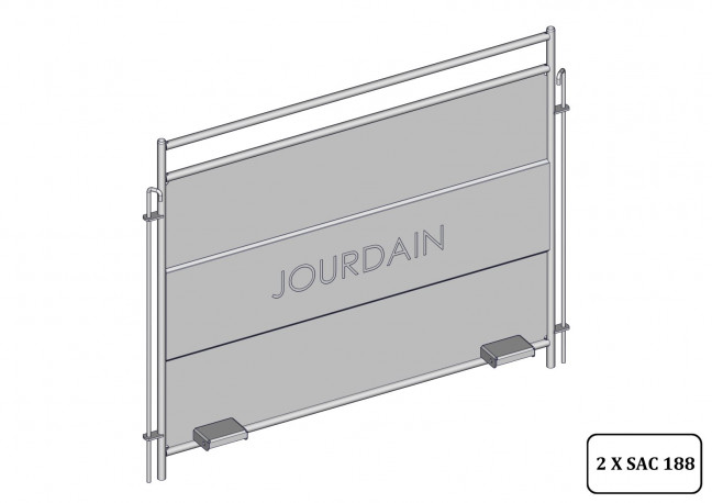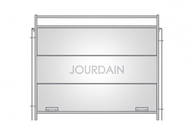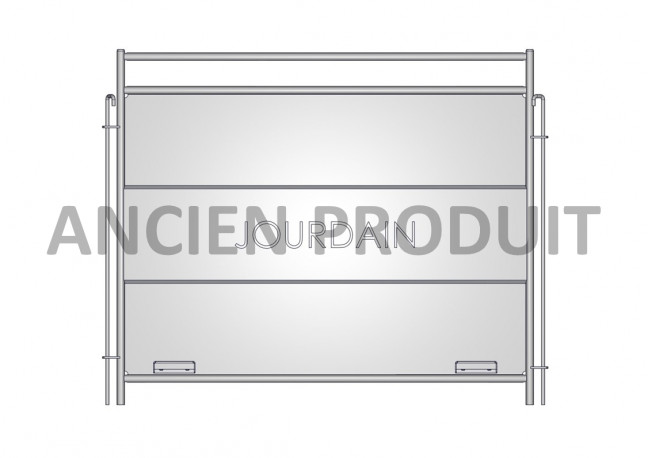 Paroi métallique tôlée de longueur 1,50M et hauteur 1,20m. L'assemblage se fait par broche sur une façade de case à veau. Elle est livrée avec deux fixations à monter permettant l'articulation d'un caillebotis en PEHD.