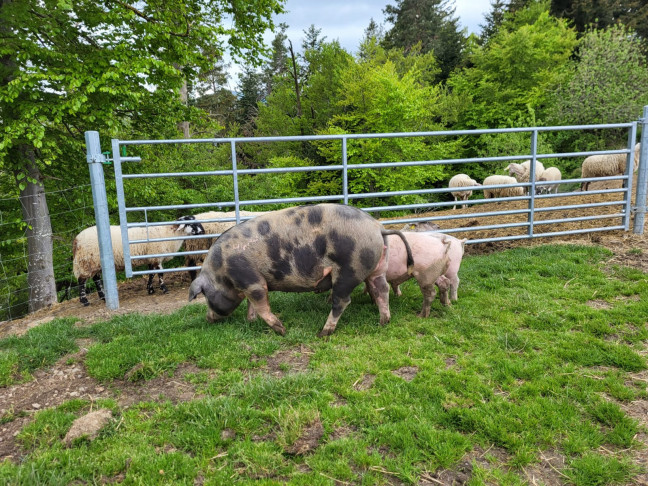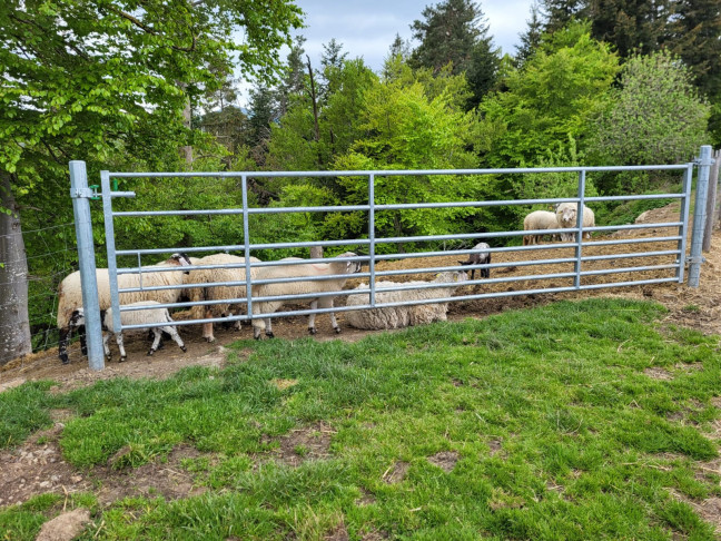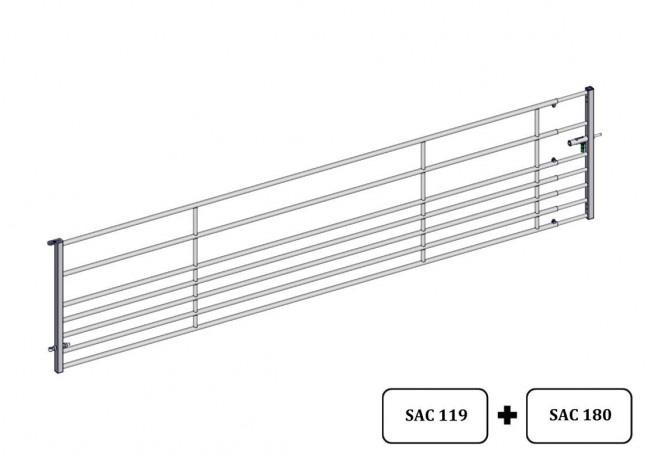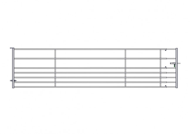 Porte extensible 7 lisses petit bétail de 5/6m avec 1 verrou AUTOLOCK. Cette porte extensible est fabriquée en tube de D.40mm pour la partie arrière avec une série d'entretoises D.34mm et une tige à œil de réglage en hauteur. La partie avant est fabriquée en tube D.32mm et possède un verrou Autolock. Elle est utilisée en intérieur de bâtiment pour le veau, le mouton et la chèvre. Les petites dimensions se fixent sur un poteau Trèfle D.76mm mais prévoir un poteau D.102mm à partir de 3m de longueur.