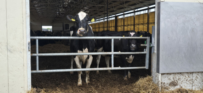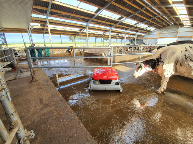 Porte MILKY EX3 Autolock 2/3m complète. Cette barrière de hauteur 80cm est idéale dans le couloir de raclage des bâtiments laitiers car elle permet le passage des robots de raclage sous la barrière.