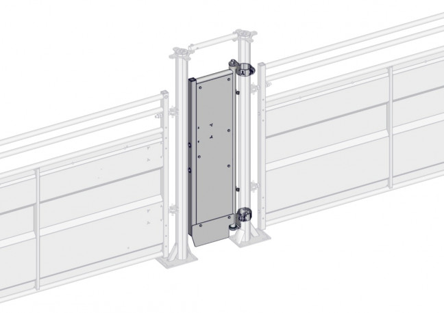 Portillon tôlé de passage d'homme pour couloir de contention. Il se fixe sur un poteau Trèfle d.102mm et offre un passage de sécurité pour l'éleveur avec une largeur confortable de 40cm. Ne peut pas être installé sur un poteau de contention 9P.