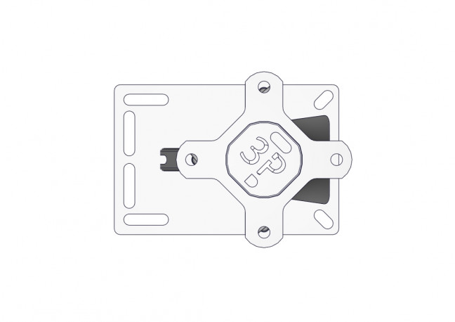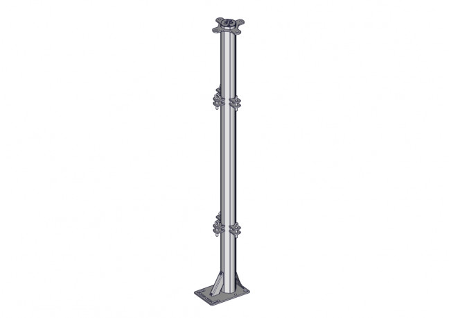 Poteau de contention sur platine "3P" 3 direction. Poteau de contention sur platine 3D au détail. Poteau avec un plat en partie haute permettant de fixer une barre d'entretoise.