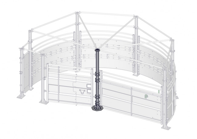 Poteau de rotation sur platine pour contention PREMIUM. Poteau permettant de recevoir la barrière de rotation avec ses brides en option. Poteau avec un plat en partie haute permettant de fixer une barre d'entretoise.