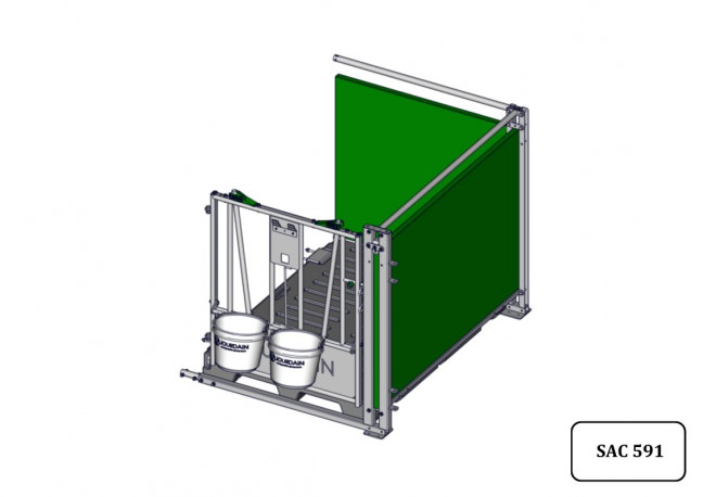 Rallonge pour case Mobile-veau constituée de 2 parois, d'une façade avec 2 cornadis manuels et d'un caillebotis autoportant et anti dérapant d'épaisseur 15cm, le caillebotis est relevable sur la paroi pour simplifier le nettoyage (breveté). Permet de rallonger une case posée au sol sans roulettes.