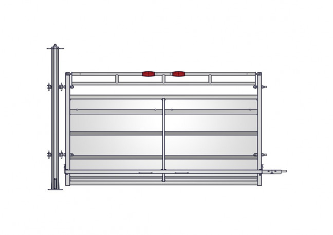 Elément de 3m complet pour rallonger un couloir fixe sur platine. Cet ensemble de pièces permet de rallonger un couloir fixe d'une longueur de 3m. Il est composé de 2 barrières tôlées à lisse rabattable de 3m, 1 marchepied relevable avec sa rallonge, 2 poteaux de contention 2D sur platine avec son entretoise.
