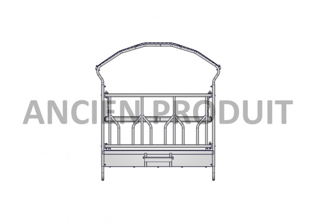 Râtelier 4 faces (2x2m) avec 12 passages de têtes type Feston. Râtelier 4 faces (2x2m) avec 12 passages de têtes type Feston pour bêtes écornées, comprenant un côté avec rebord d'auge ouvrant pour faciliter l'approvisionnement et le nettoyage.