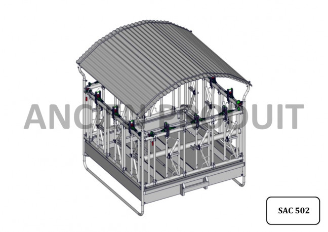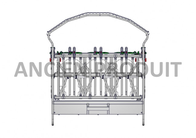 Râtelier 4 faces (2x2m) avec 12 passages de têtes type Cornadis Safety Râtelier 4 faces (2x2m) avec 12 passages de têtes type Cornadis Safety pour bêtes laitières écornées, comprenant un côté avec rebord d'auge ouvrant pour faciliter l'approvisionnement et le nettoyage.