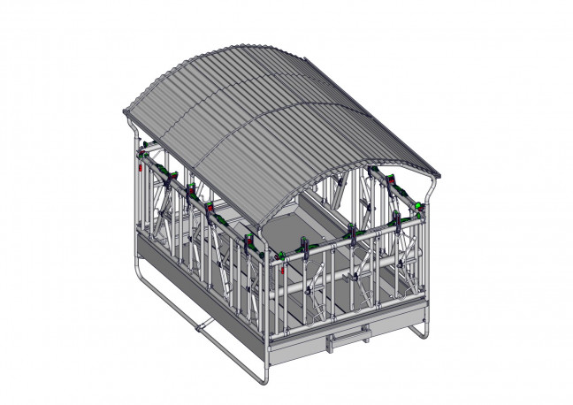 Râtelier BIG BALL (2x3m) avec système de transport 3ième points, modèle 14 passages de têtes type SAFETY IV. Râtelier BIG BALL (2x3m) avec système de transport 3ième points, modèle 14 passages de têtes type SAFETY IV.