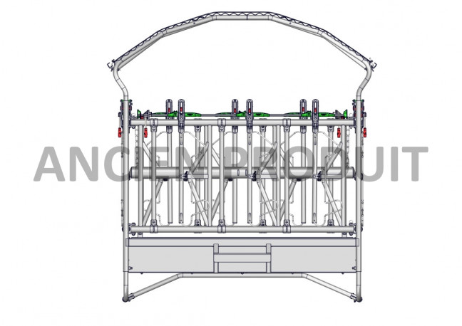 Râtelier Big Ball (2x3m) avec 14 passages de têtes type Cornadis Safety Râtelier Bigball (2x3m) avec 14 passages de têtes type Cornadis SAFETY pour bêtes écornées, comprenant un côté avec rebord d'auge ouvrant pour faciliter l'approvisionnement et le nettoyage.
