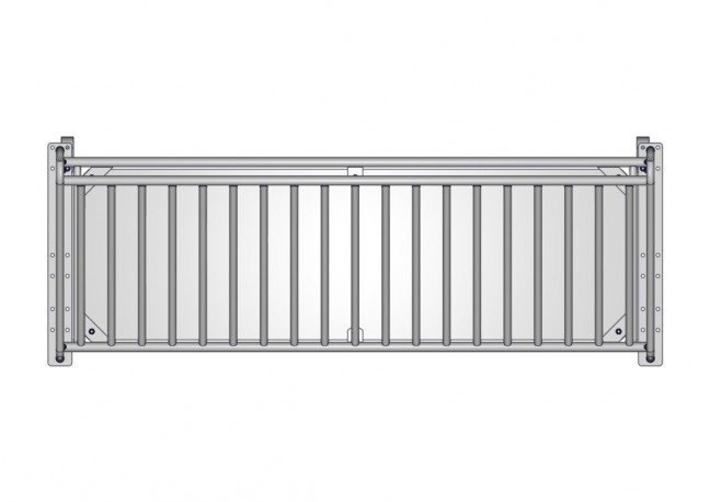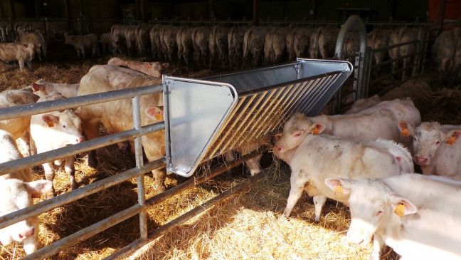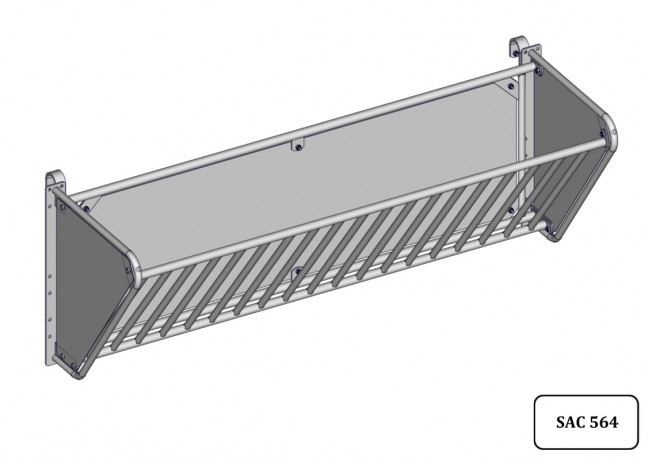 Ratelier modulable sur barrière modèle "veau" long 2m. Ratelier modulable sur barrière modèle "veau" long 2m. Ratelier se posant sur une barrière, fond et côtés tôlés barreaudage en tube D.27mm. Espace entre barreau 7.5cm pour veau.