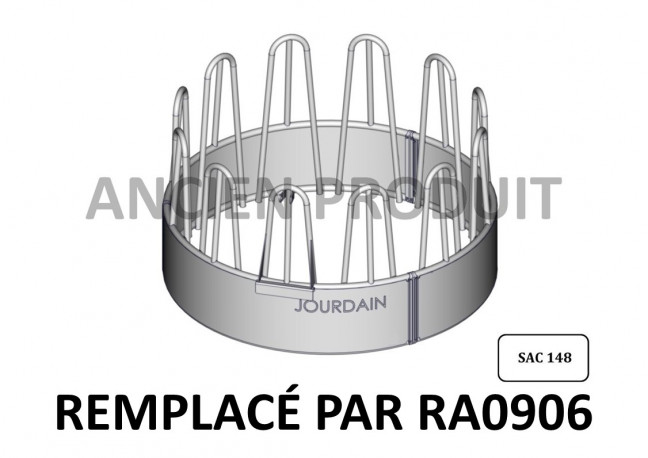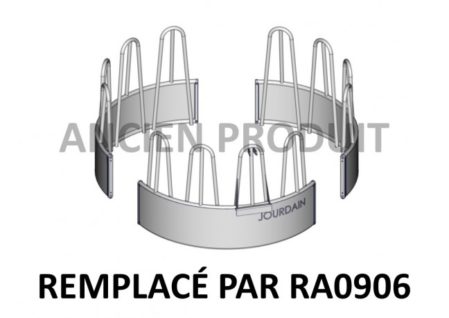 Râtelier circulaire avec 12 passages de têtes Feston pour bêtes encornées, composé de 3 couronnes en tubes ø 49mm.