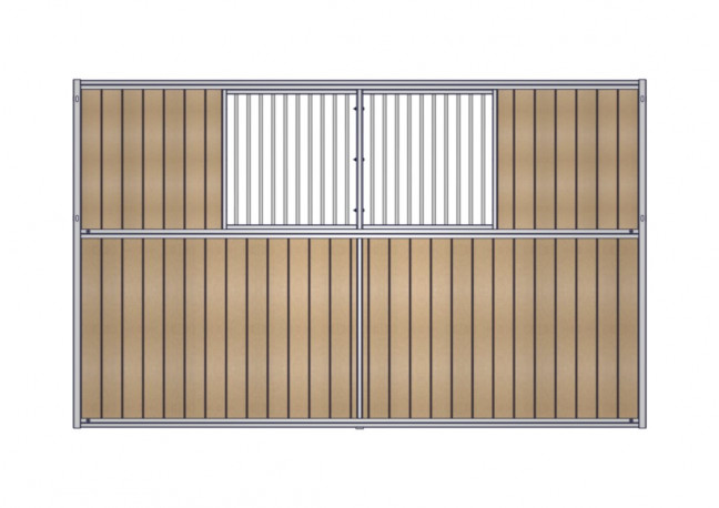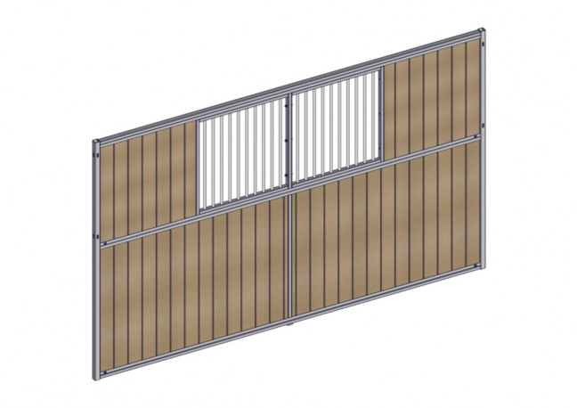 Séparation fixe de box de 4m, barreaudée en partie haute et résine en partie basse. Séparation fixe de box de 4m, barreaudée en partie haute et résine en partie basse. Résine coupée à longueur à monter lors de l'installation.