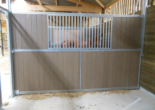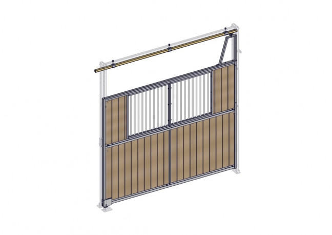 Séparation coulissante de box de 3m, barreaudée en partie haute et résine en partie basse. Résine coupée à longueur à monter lors de l'installation.