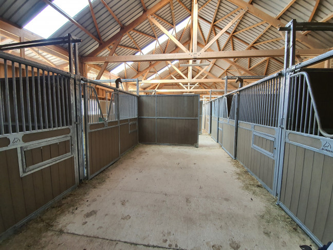 Séparation coulissante de box de 3.50m, Résine en partie haute et basse. Résine coupée à longueur à monter lors de l'installation.