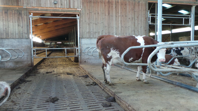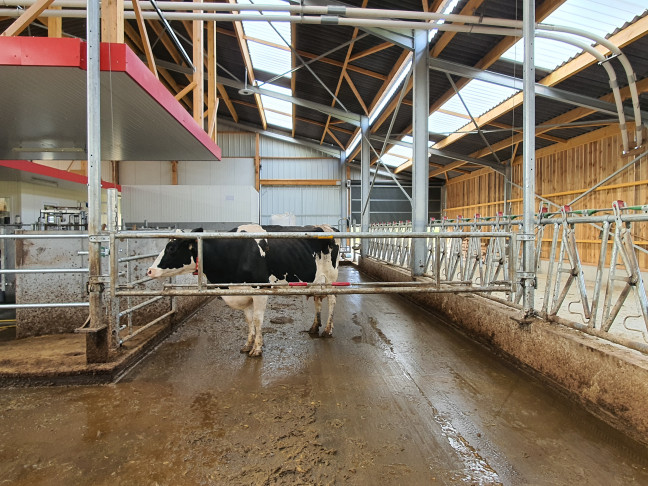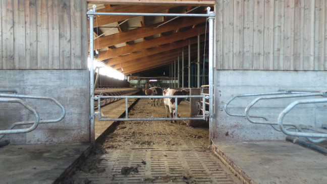 Séparation relevable réglable en longueur de 3.44m à 4.50m. Celle-ci est destinée à séparer des couloirs laitiers ou bien des lots de logettes. Ne pas utiliser en bovin viande.