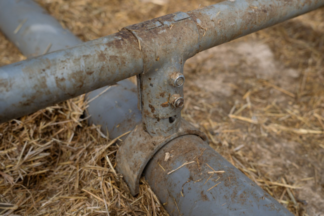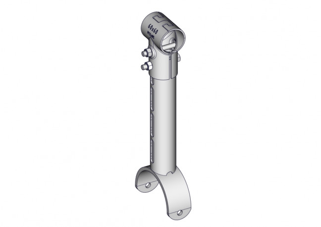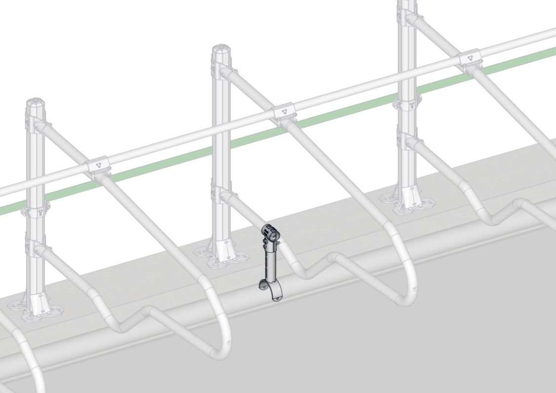 Support réglable par coquille-griffe, Support réglable par coquille-griffe, permettant de maintenir un tube PVC haute pression ø125mm faisant office d'un arrêtoir genouillère confortable. Prévoir un support toutes les deux logettes. Ne peut pas s'installer sur les modèles US, Kondor et Cowflex III.