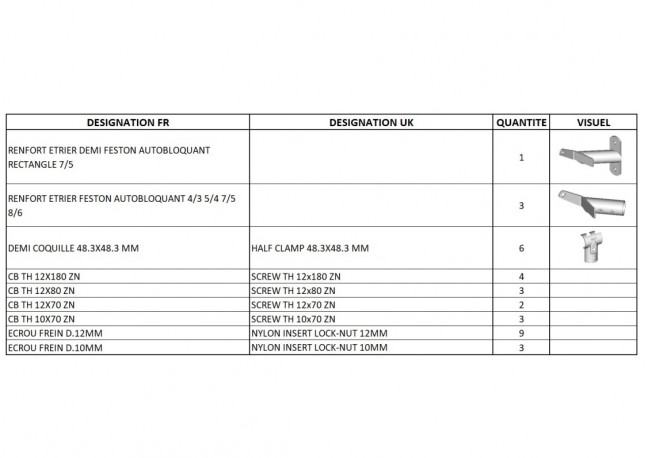Lot de renforts d'étriers pour cornadis feston autobloquant 4 places sur 3 m de première génération.