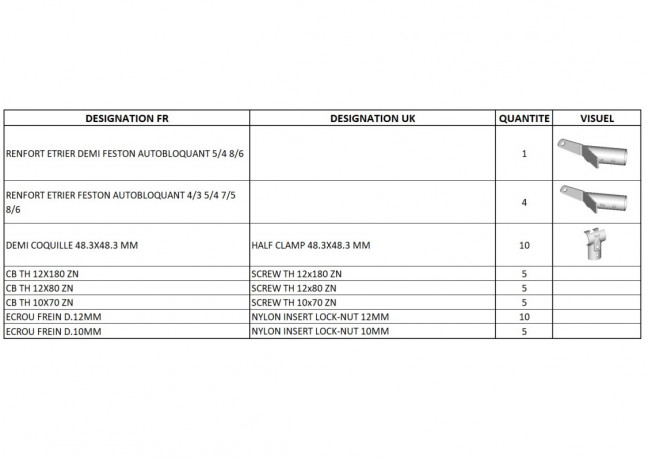 Lot de renforts d'étriers pour cornadis feston autobloquant 5 places sur 4 m de première génération.
