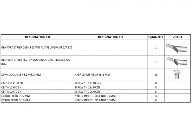 Lot de renforts d'étriers pour cornadis feston autobloquant 8 places sur 6 m de première génération.